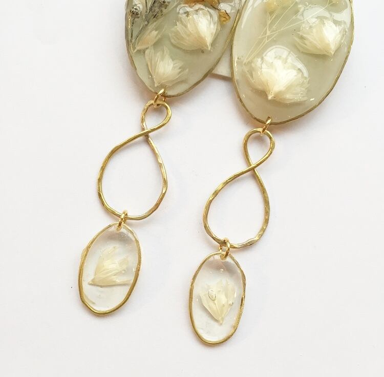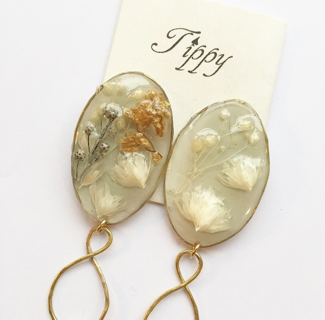 一つ一つ真鍮を溶接し創り出すデザイン 「淡く儚い光を閉じ込めて…」 オータムカラーにペタルを閉じ込めたデザイン オーバル型のデザインが揺れ動くアイテムです size : 縦8cm.横2cm ピアス / イヤリングのパーツ選択が可能ですので、備考欄にどちらをご希望か必ずご記入をお願い致します 記入が無かった場合はピアスの金具を付けての発送になりますので、ご了承くださいませ