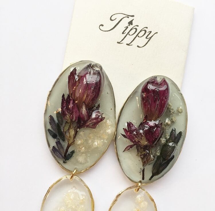 一つ一つ真鍮を溶接し創り出すデザイン 「淡く儚い光を閉じ込めて…」 オータムカラーにペタルを閉じ込めたデザイン オーバル型のデザインが揺れ動くアイテムです size : 縦7cm.横2.5cm ピアス / イヤリングのパーツ選択が可能ですので、備考欄にどちらをご希望か必ずご記入をお願い致します 記入が無かった場合はピアスの金具を付けての発送になりますので、ご了承くださいませ