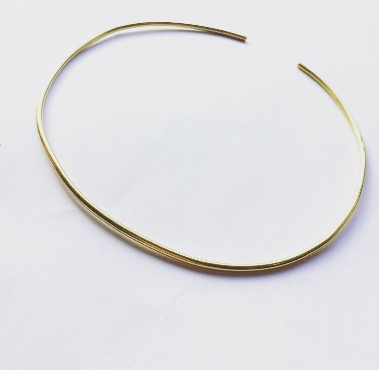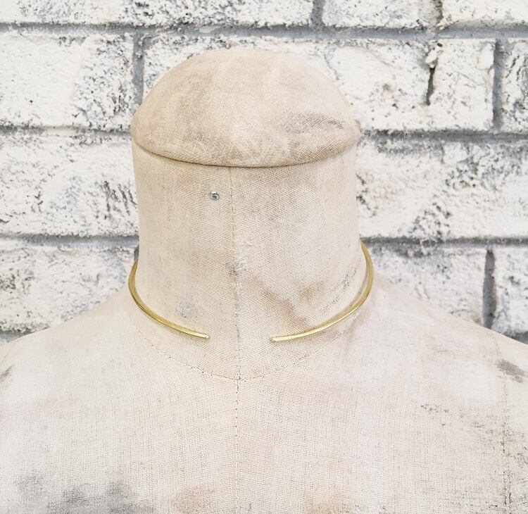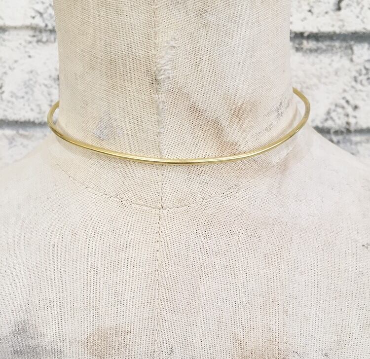 シンプルなラインが魅力的な真鍮チョーカー 首に沿わせてチョーカーにもでき、少し幅を広げてネックレスにもなるデザインが2wayで楽しめるアイテムになります size : 幅2mm size : 調節可能なフリーサイズ