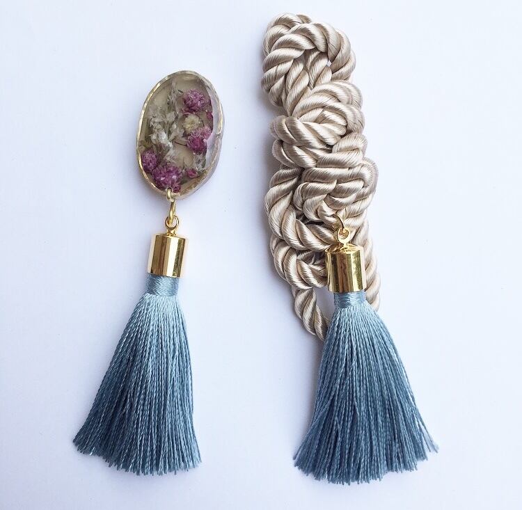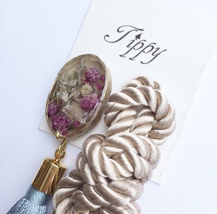 オーバル型に華やかなドライフラワーのペタルを閉じ込めたアクセサリー