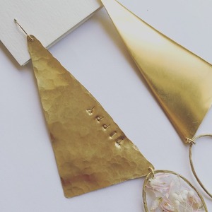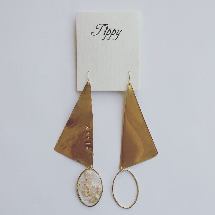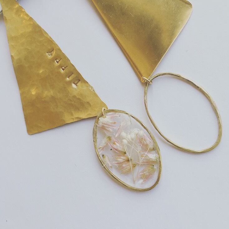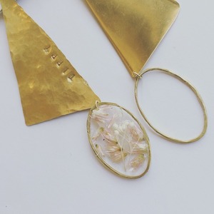 真鍮プレートに刻印を入れたアクセサリー 凹凸のプレートには立体的なドライフラワーを閉じ込めてアシンメトリーのプレートアイテムになります 揺れる耳元が可愛いアクセサリー size : 縦9.5cm.横3cm ピアス/イヤリング交換可能 ご希望の方は備考欄にコメント下さいませ