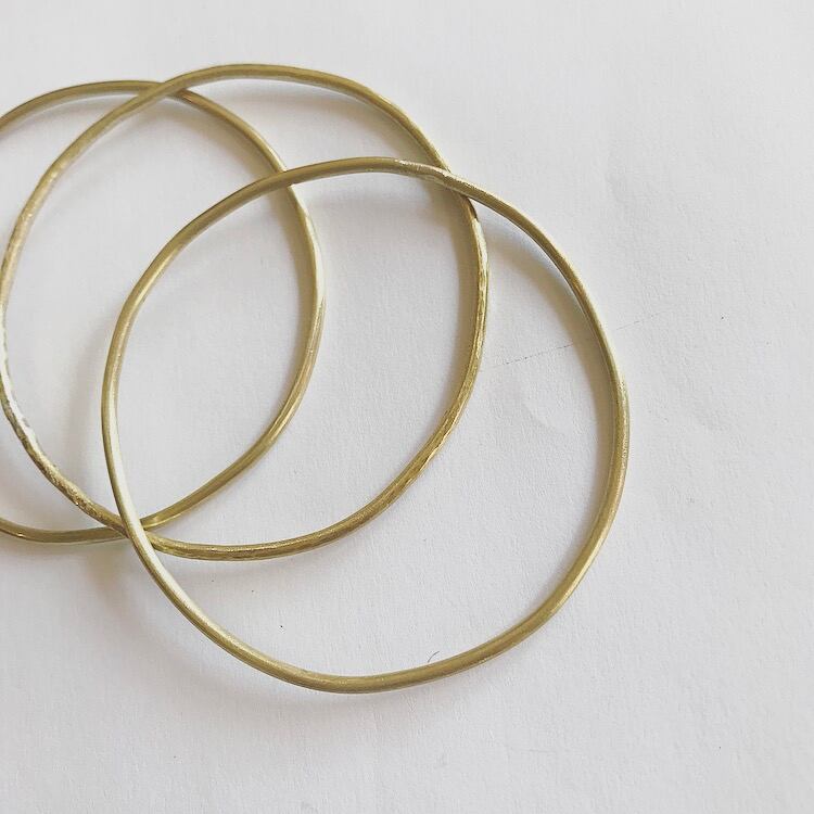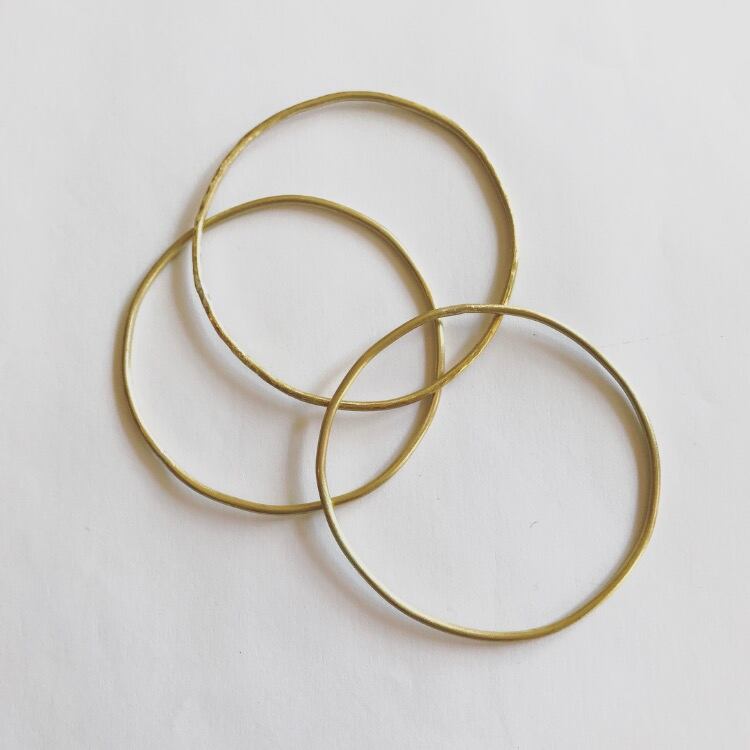溶接した真鍮で作り出す シンプルなサークルブレス 3setなので、組み合わせ自由に 色んなスタイルに合わせれるアイテムです size : 直径6cm