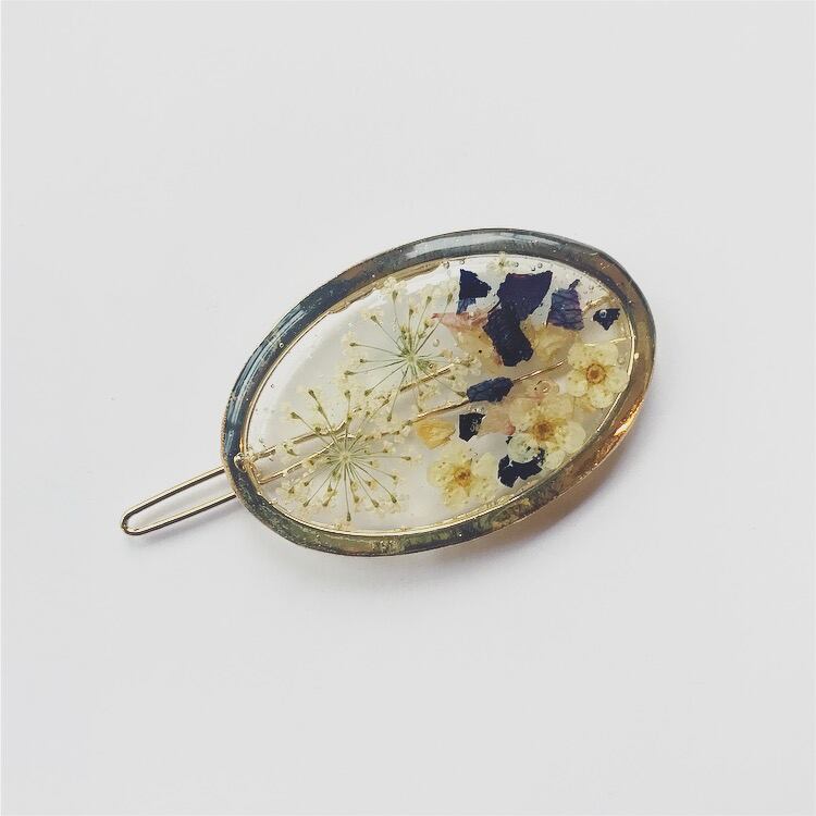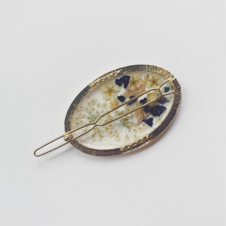 「 petal series 」 ドライフラワーを閉じこめた Tippyで人気のペタルシリーズ 組み合わせやすいクリップタイプの ヘアアクセです size : 縦3.5cm 横5cm