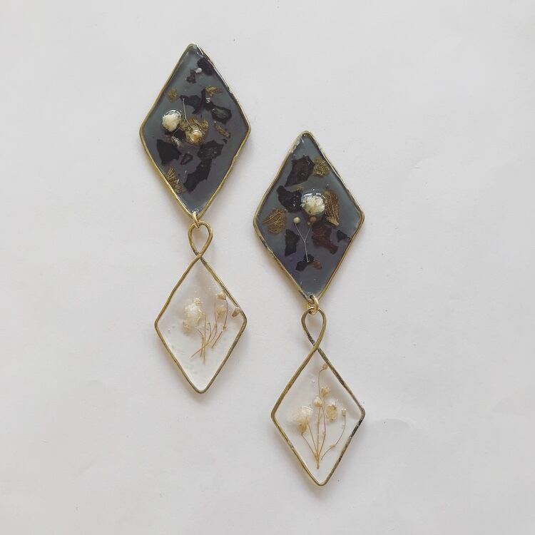 ドライフラワーを閉じ込めたペタルシリーズ クリアに透けるデザインと ドライフラワーの組み合わせが 女性らしいアイテム size : 縦9cm 横3cm ピアス/イヤリング変更可能ですので 備考欄にどちらを希望か記入をお願い致します 記入が無かった場合、 こちらからご連絡させて頂き、確認後の発送となりますので 到着が遅くなってしまう可能性がございますので ご了承くださいませ
